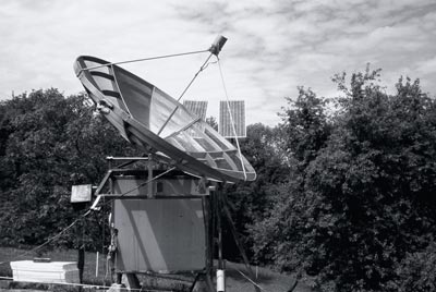 The project "hydrogen" (RT03) consists of repairing the three meter radiotelescope which was already in function in the years 1994-1997 and in 2001. The back fitting and upgrading of this telescope is based in the context of the current situation of the media and net art. The Internet against 10 million years history.