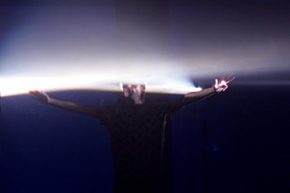 kurā gaismas staru un virsmu veidotā iluzorā telpa izaicina skatītāja uztveri.