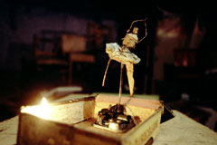 Mazā telts, kurā pietiek vietas nieka 50 skatītājiem, ir pieblīvēta ar smalkiem mehānismiem un mašīnām, mūzikas kastītēm, koka eņģeļiem, nārām, manekeniem un citām lietām, kas atgādina gan sen izzudušo balagānu, gan dažādu indiāņu kultūru estētiku. Pamazām šīs lietas atdzīvojas, sāk skanēt, spīdēt un kustēties, un kopā ar vienu aktieri izstāsta par dienu, kad Virdžīnija izmainīja Valentīna dzīvi.