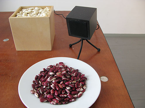Artists Raitis Šmits, Rasa Šmite and Mārtiņš Ratniks exhibit the most recent project by RIXC – Talk to Me (Long Bean 2011) - to examine the old assumption that plants which had been talked to grow better. Project is a continuation of the social participatory art campaign “Long Bean” (co-produced by RIXC and NTIL), which was based on the idea – “grow your our own vegetables!”. This year you are kindly asked to talk to the beans by using an online remote interface http://rixc.lv/talktome, thus presumably helping the “long bean” plants to grow better, faster and longer.