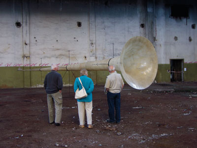 The size and sound of the trumpet evokes different associations. Much of the essential content can be added through those - it can be mystified and so forth. However, to my mind, the shape of the trumpet is successful as it is visually light in appearance - it looks as it was made of wax. Its acoustic qualities can be easily observed while listening to the sound near to the huge sound exit opening. Stronger sound generations make your eyes start blinking and likewise the sound can be felt with the rest of your body.