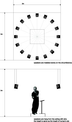 The SINE WAVE ORCHESTRA stay is a work situated in a room with multiple speakers horizontally placed alongside the participant. The basic idea is that a participant enters the room, selects the frequency and the sound source position for his/her sine wave, and leave the room with the sine wave continuously being played in the room. As more participants enter the room and leave sine waves, the more sine waves are accumulated resulting in the sea of sine waves as collective sound representation. During the exhibition, the sound field will change from a phase where each sine wave individually represents its existence to a phase where each sine wave mutually interferes as a cluster. In the work, by listening to the sea of sine waves played by the others and by adding his/her own sine wave to the room, people participate in the performance of The SINE WAVE ORCHESTRA.