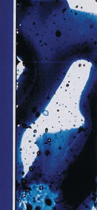 ‘Kosmos’ is a study of translucent crystals. With a typically tactile approach the artist grew the crystals directly onto the 16mm filmstrip.