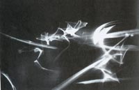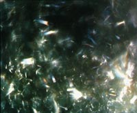 While testing a new camera Brakhage couldn't resist putting the lens under the surface while passing this little stream. The result is stunning. Like in his masterpiece ´Text of light´ he dives deep into the refracting medium for very close-up pictures of specks of light beautifully transformed into polyhedral formations. In Brakhage´s own words: ´A photography of the essence of life itself as the interaction of pulsating and commingling containers´.